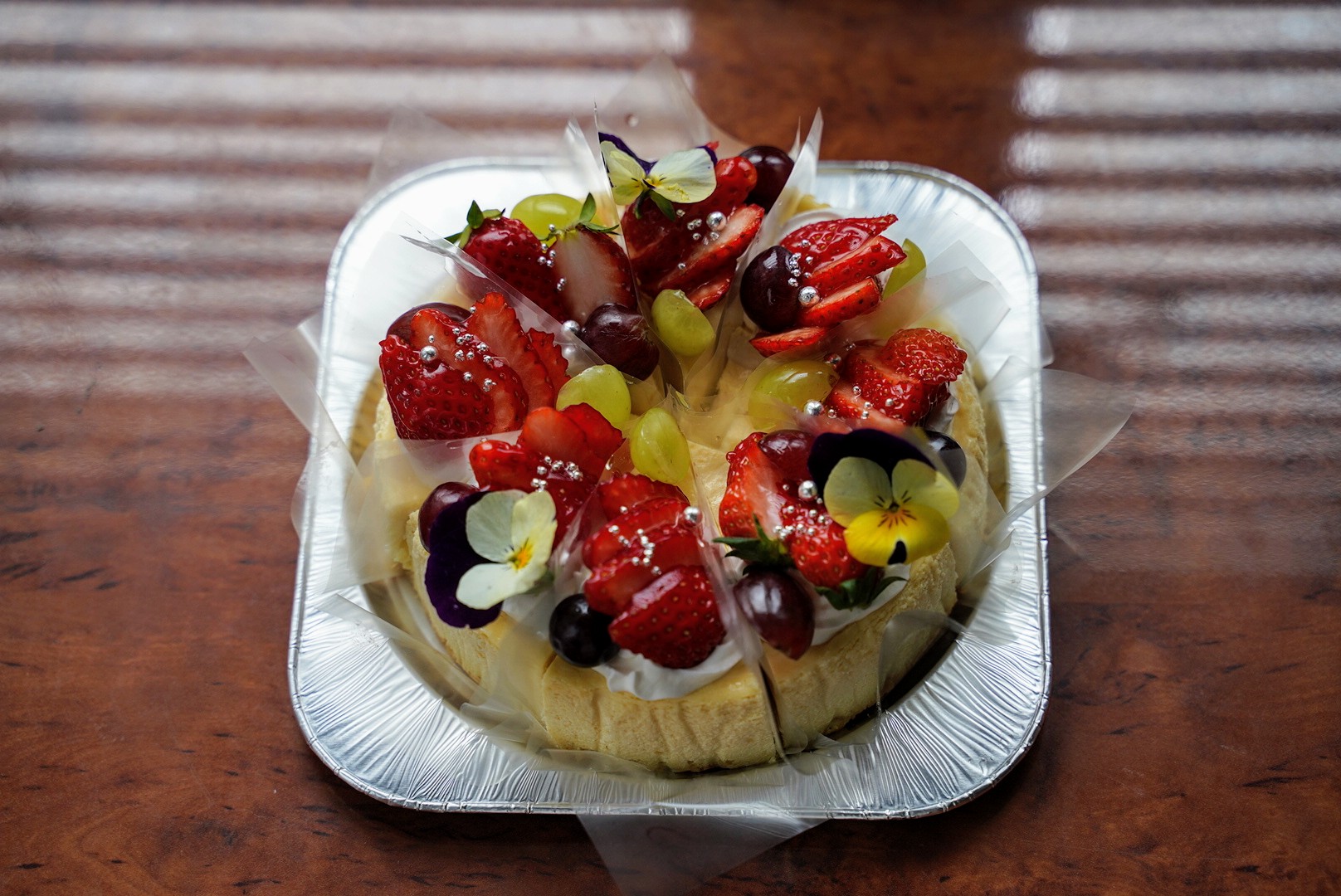 門出が華やかなものになるよう、フレッシュないちごと2色のぶどうで春らしくデコレーションしました。